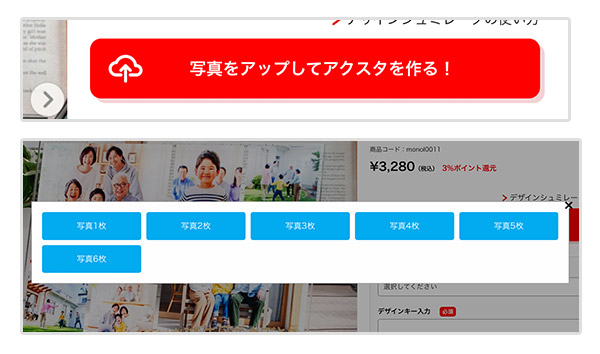 1「写真をアップロード&台座編集」ボタンをクリック