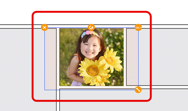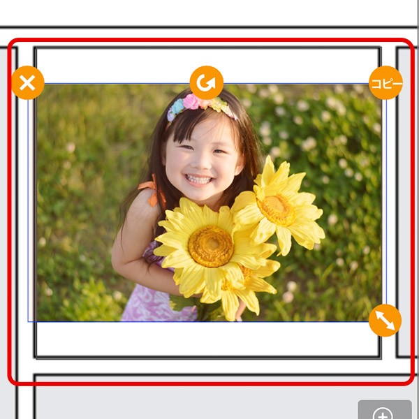 配置した写真の大きさ、位置を調整します。