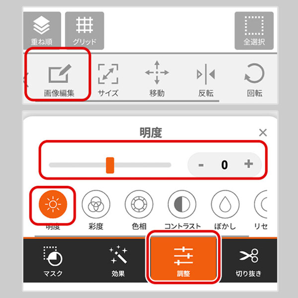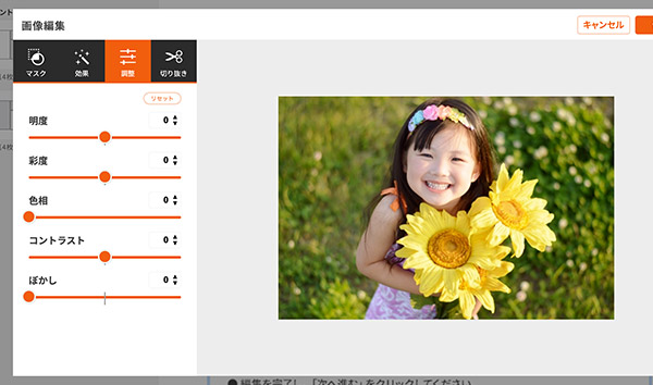 配置した写真の明るさなどを調整します