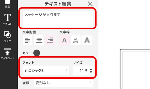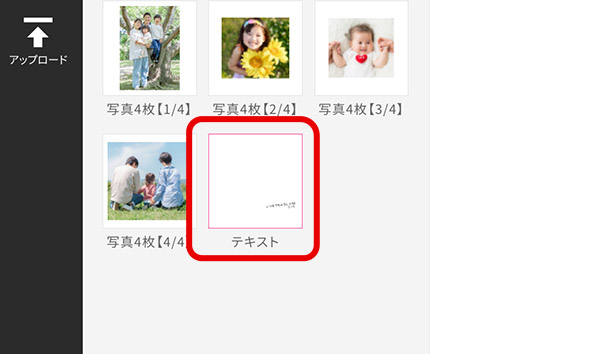 白い枠に写真を配置します(グレーの枠には写真を配置できません)