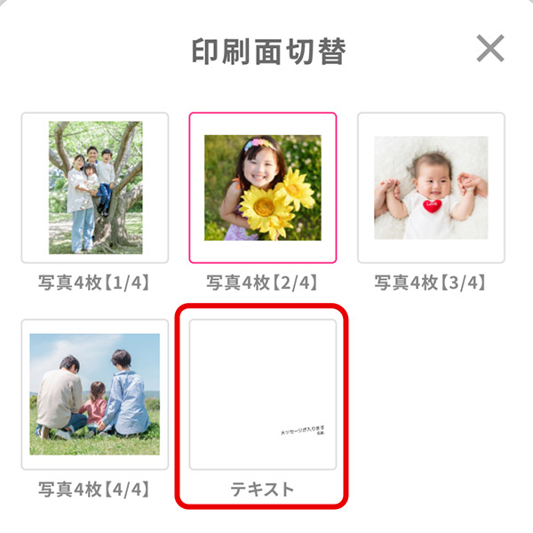 表示されたポップアップのボタンの中から、オプションで選択した「写真枚数」と同じ枚数のボタンをクリックします。