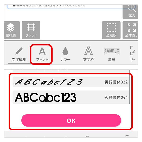 フォントの変更をしたい場合は「フォント」をクリックし好きなフォントを選び「OK」をクリックします。