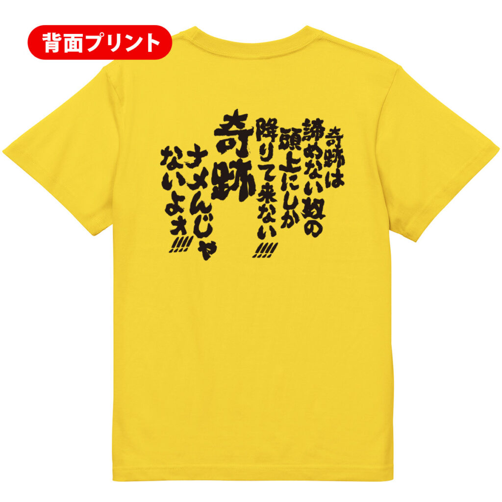 このTシャツを着た瞬間、あなたの甘い考えが全否定される。奇跡は待つものじゃない。掴み取るものだ。そして最後の「よオ!」の謎の語尾が、なぜか説得力を増す。