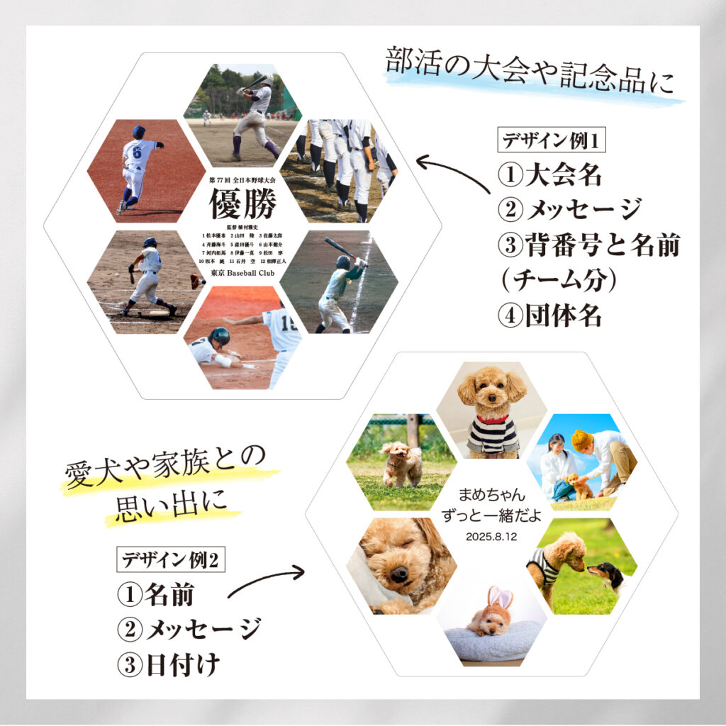 写真をスマホで送るだけ! オリジナルフォトフレームが作れちゃう 2サイズから選べます。 お好きなメッセージが入れられます。
