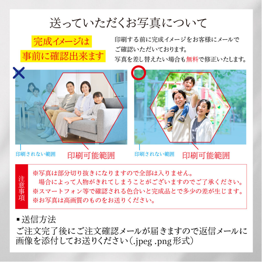 画像は撮影時のサイズのまま(最も高画質)でお送りください。