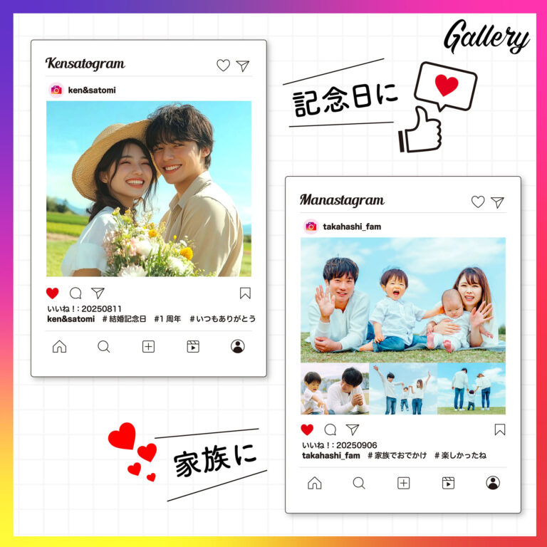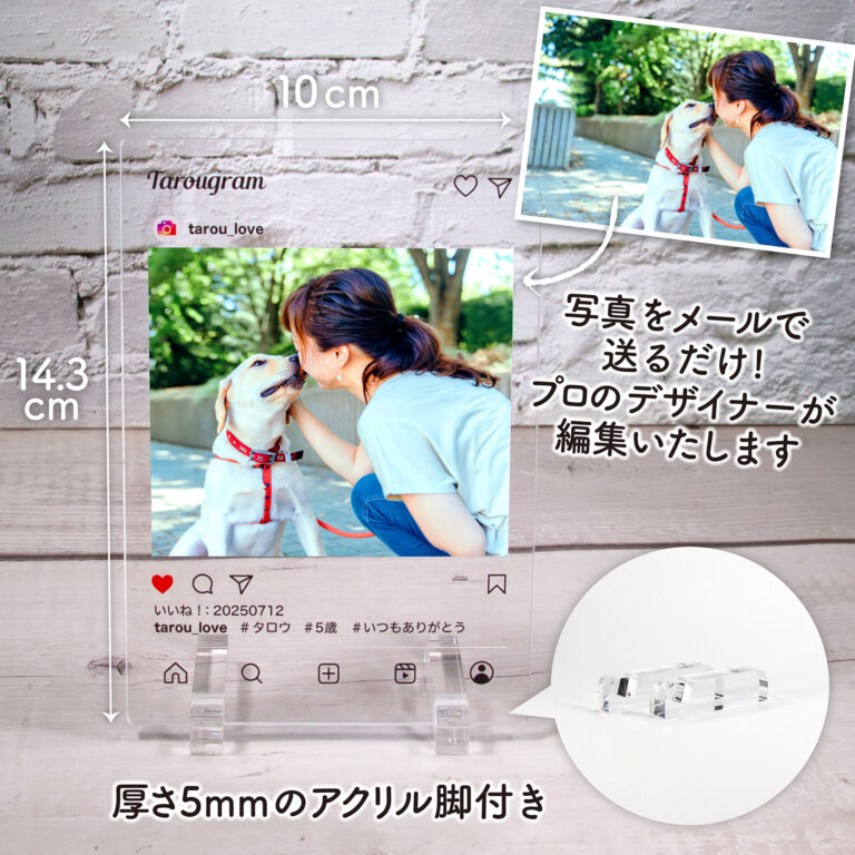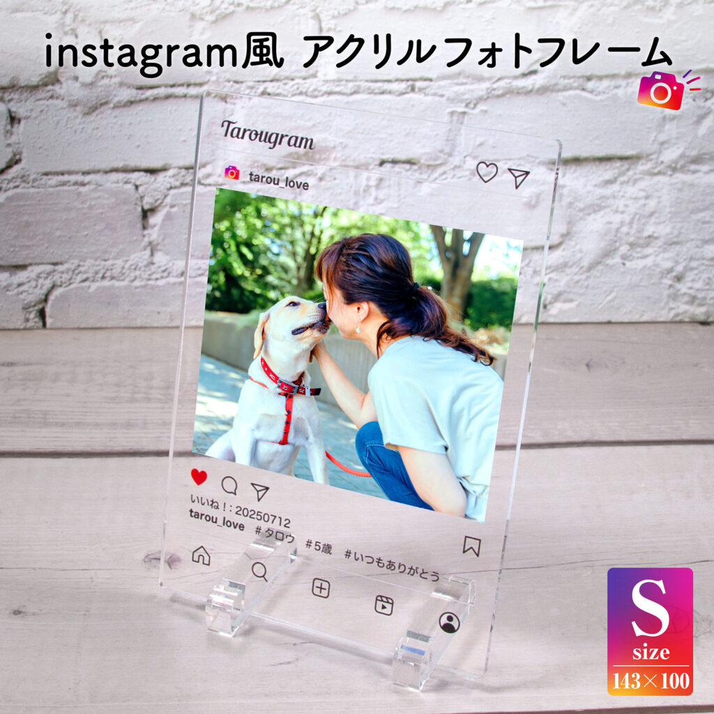 インスタ風デザインが魅力のアクリルフォトフレーム。お気に入りの写真をおしゃれに飾れて、プレゼントにもぴったりなアイテムです。