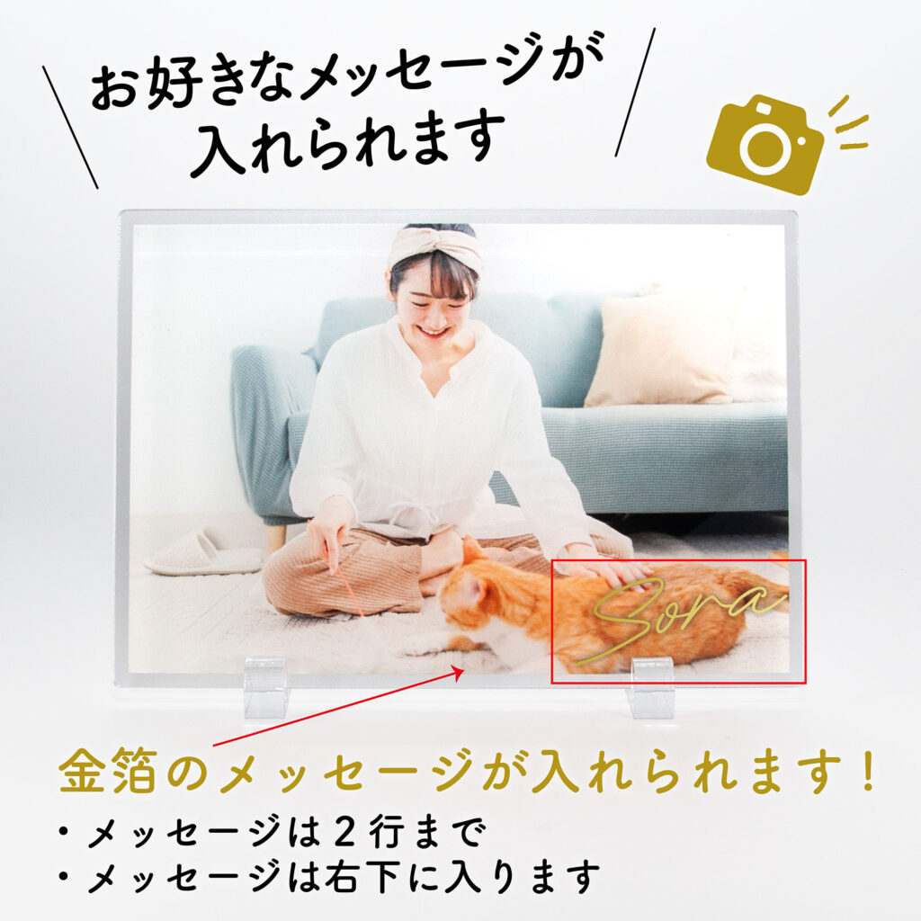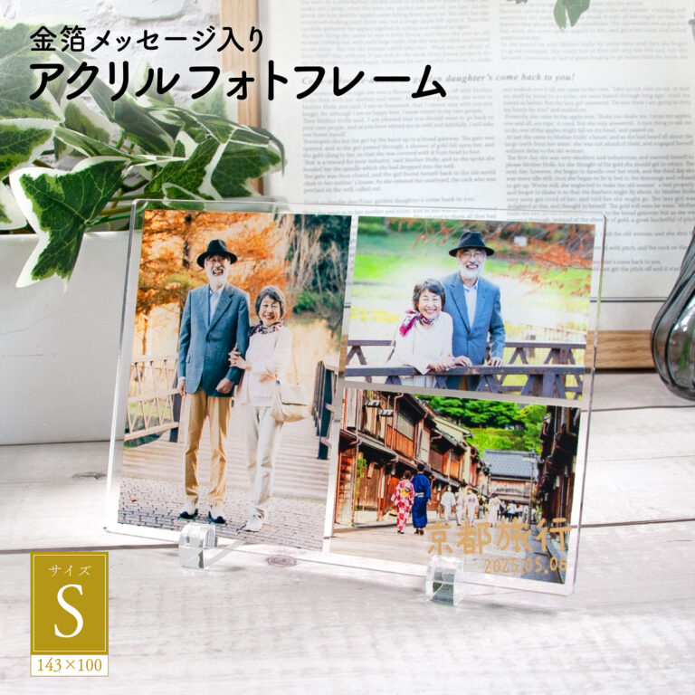 お好きなメッセージが入れられる!金箔メッセージ入りアクリルフォトフレーム Sサイズ