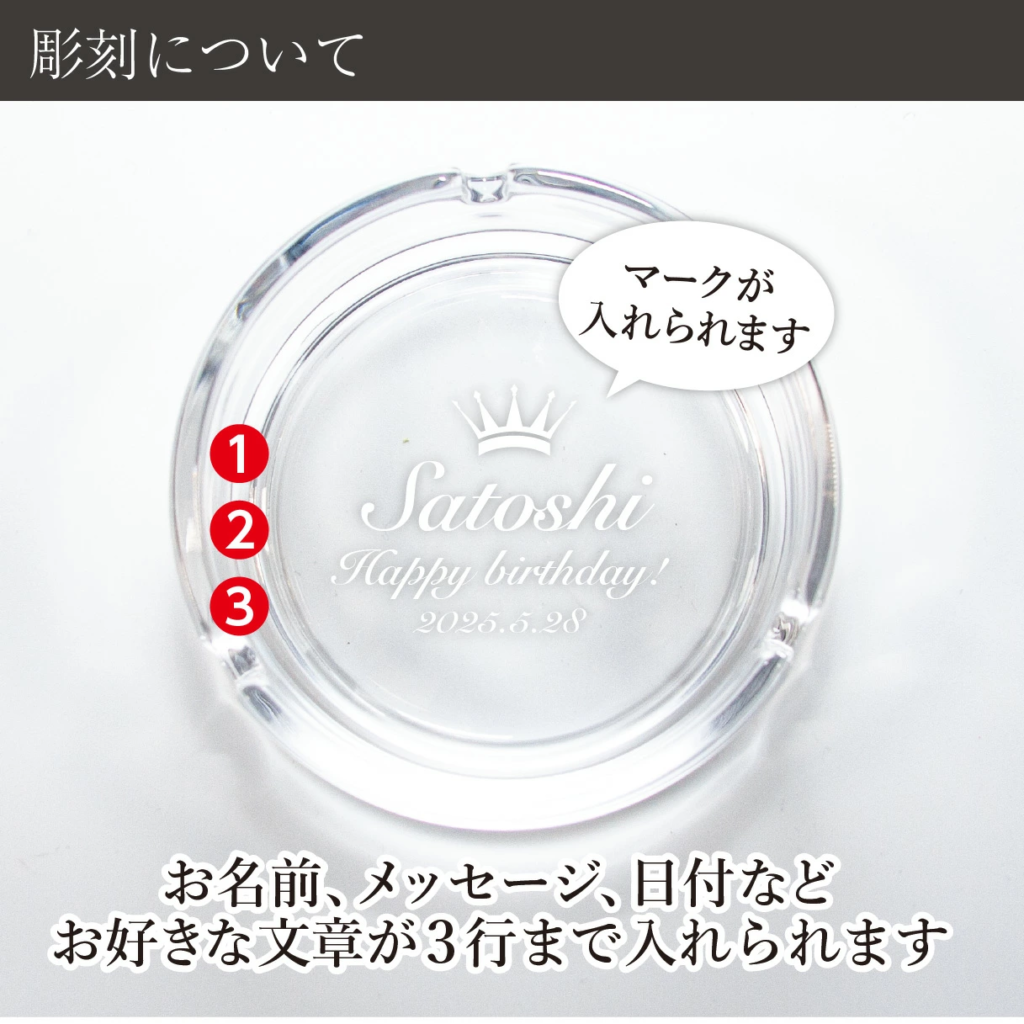 名入れ 灰皿 ガラス 卓上 父の日 父 彫刻 刻印 プレゼント ギフト おしゃれ 無料 オリジナル タバコ 還暦 還暦祝い 誕生日 記念日 お祝い