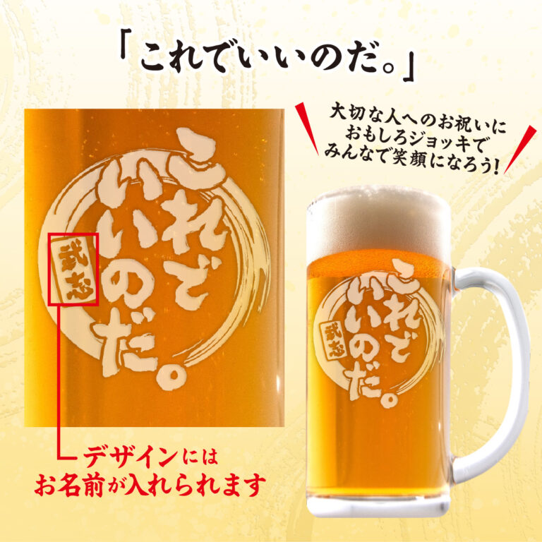 ・くすりと笑えるプレゼントを贈りたい ・名前を入れて自分だけのビールジョッキが欲しい ・ビール好きの人にプレゼントがしたい