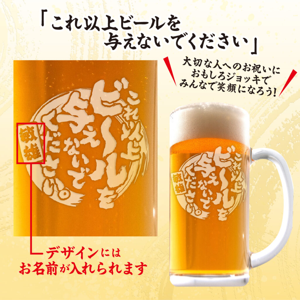 ・くすりと笑えるプレゼントを贈りたい ・名前を入れて自分だけのビールジョッキが欲しい ・ビール好きの人にプレゼントがしたい