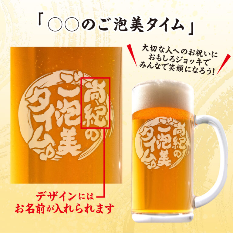 ・くすりと笑えるプレゼントを贈りたい ・名前を入れて自分だけのビールジョッキが欲しい ・ビール好きの人にプレゼントがしたい