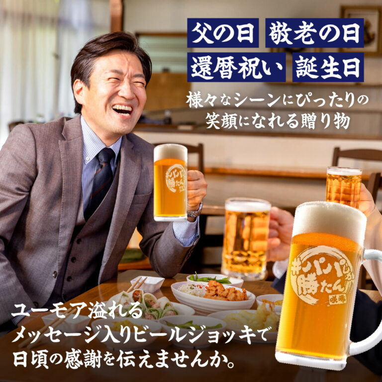 ・くすりと笑えるプレゼントを贈りたい ・名前を入れて自分だけのビールジョッキが欲しい ・ビール好きの人にプレゼントがしたい