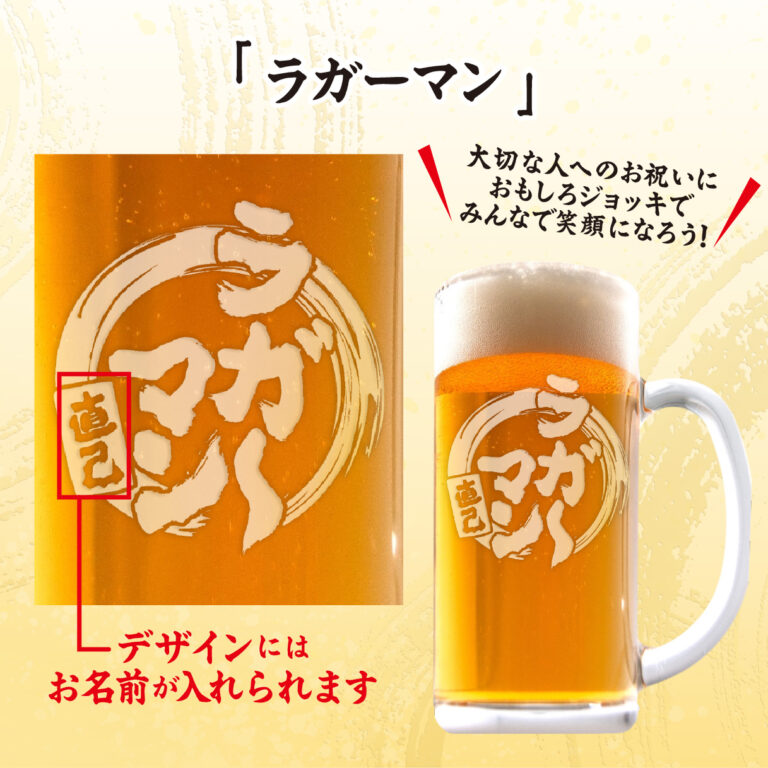 ・くすりと笑えるプレゼントを贈りたい ・名前を入れて自分だけのビールジョッキが欲しい ・ビール好きの人にプレゼントがしたい