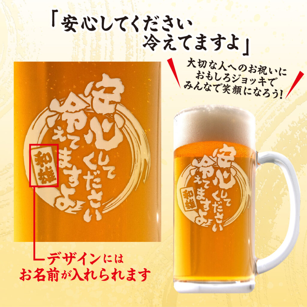 おもしろ名入れビールジョッキ - 安心してください 冷えてますよ