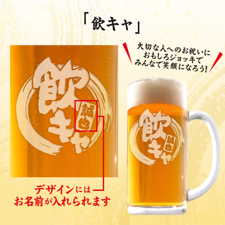 ・くすりと笑えるプレゼントを贈りたい ・名前を入れて自分だけのビールジョッキが欲しい ・ビール好きの人にプレゼントがしたい