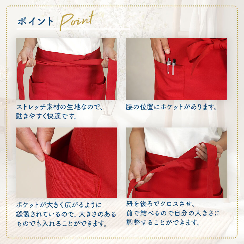 料理、ガーデニング、DIY作業、アート制作、カフェや工房でのお仕事など、汚れを気にせず集中して作業に取り組めます。洗濯機での丸洗いが可能で、お手入れも簡単です。