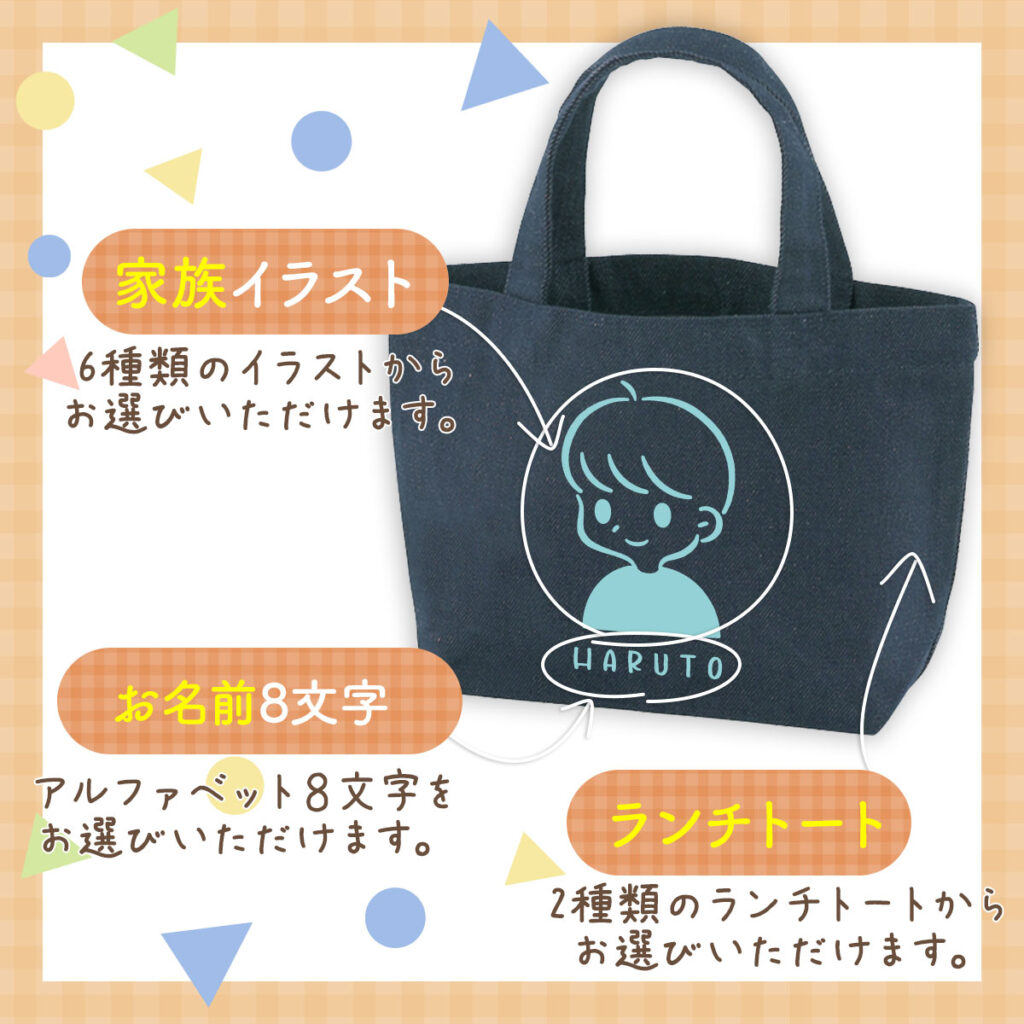 かわいい家族のイラストに名入れができる!ランチバッグ型トートバッグ