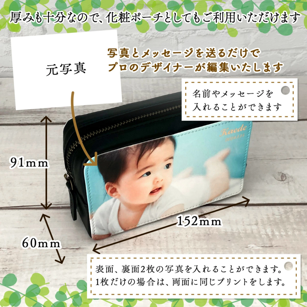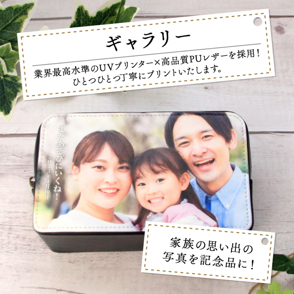 合皮に写真とメッセージをプリント、特別なオリジナルギフトとしてお贈りするのはいかがでしょうか。母の日・父の日、さまざまなシーンでご利用いただけます。