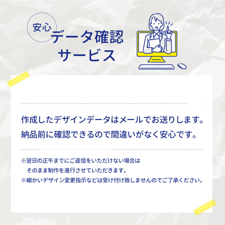 デザインデータをお送りしてご確認いただいてから5営業日以内発送送
